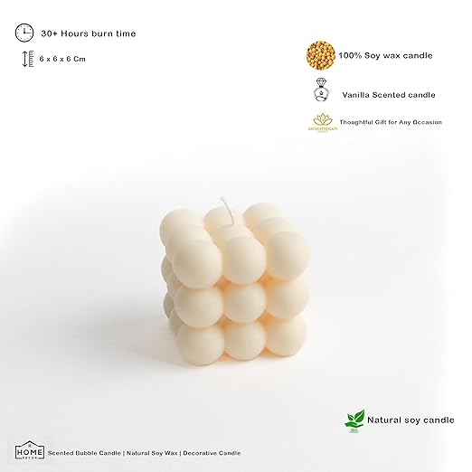 Candlewale Scented Bubble Candles, Set of 2 Handmade Soy Wax Cube Candles, Home Decor and Gifting (Vanilla)